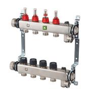 Коллектор 4 контура с расходомерами Multidis SFR Oventrop, 1" бар-6, с кранами, нерж сталь