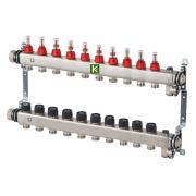Коллектор 10 контуров с расходомерами Multidis SFR Oventrop, 1" бар-6, с кранами, нерж сталь