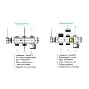 Распределительная гребенка Овентроп 140650062 включает в себя подающий и обратный коллекторы, настенные кронштейны и крепеж. Коллектор оснащен вставками, ниппелями для подключения контуров отопления,
