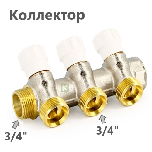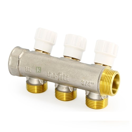 Коллектор UNI-FITT НВ 3 выхода с вентилями никелированный, 3/4"х3/4"EK