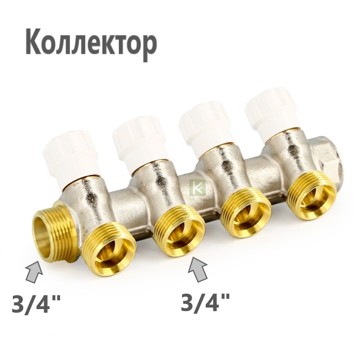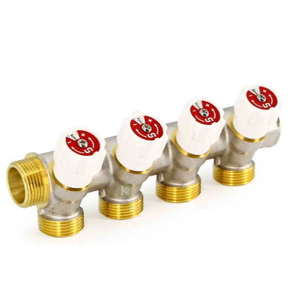 Коллектор UNI-FITT НВ 4 выхода с вентилями никелированный, 3/4"х3/4"EK
