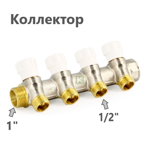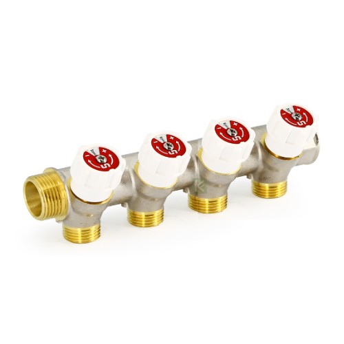 Коллектор UNI-FITT НВ 4 выхода с вентилями никелированный (под плоскую прокладку), 1"х1/2"