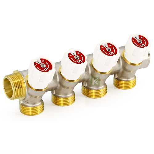 Коллектор UNI-FITT НВ 4 выхода с вентилями никелированный, 1"х3/4"EK