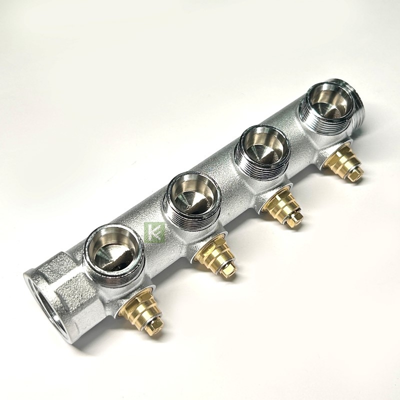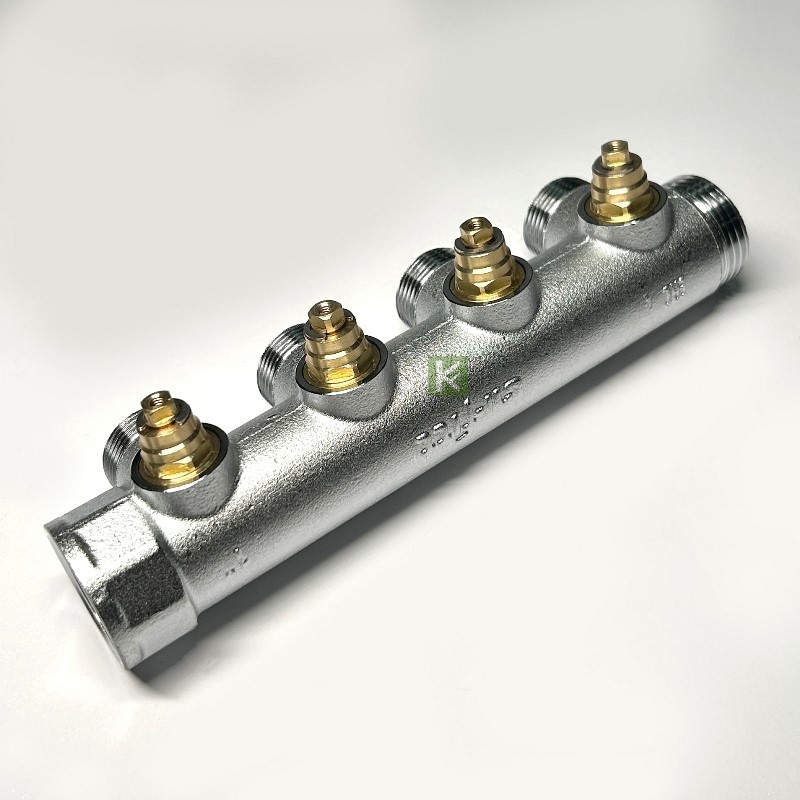 Коллектор Uni-Fitt НВ с вентилями и выходами под 90° хромированный, 4 выхода