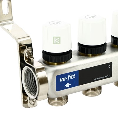Коллектор Uni-Fitt TECHNO 2 выхода с расходомерами и термостатическими вентилями (450W4302) предназначен для равномерного