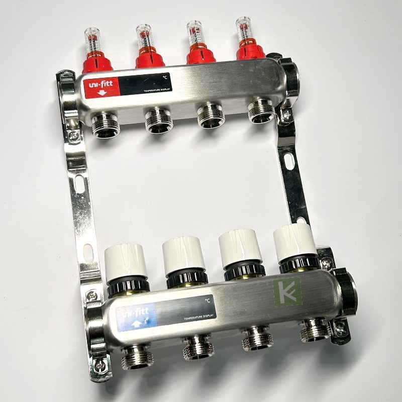 Коллектор Uni-Fitt TECHNO 4 выхода с расходомерами и термостатическими вентилями (450W4304) предназначен для равномерного