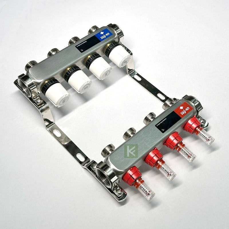 Коллектор Uni-Fitt TECHNO из нержавеющей стали с расходомерами 4 выхода (450W4304)