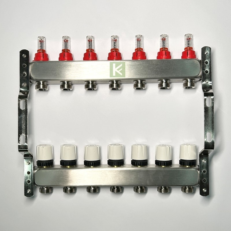 Коллекторная группа Uni-Fitt TECHNO из нержавеющей стали с расходомерами и термостатическими вентилями, 7 выходов