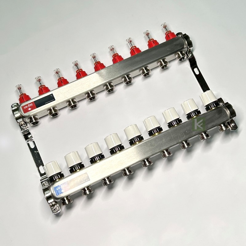 Коллектор Uni-Fitt TECHNO из нержавеющей стали с расходомерами 9 выходов (450W4309)