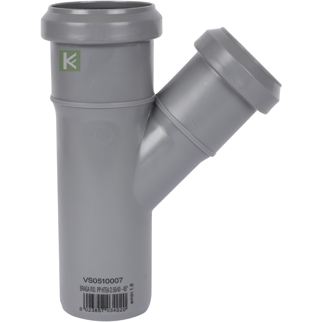 Тройник Sinikon Standart 50x40 мм 45° канализационный серый (арт. 508007)