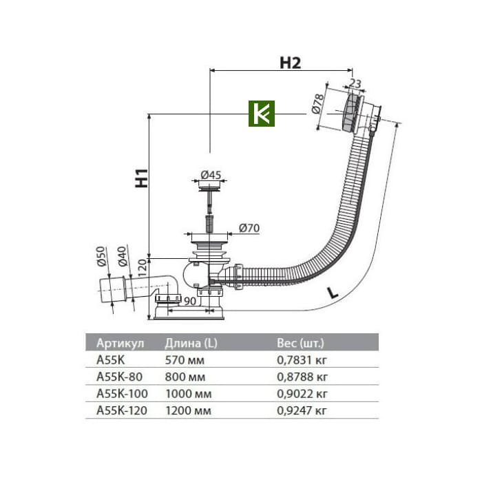 Слив-перелив Alcaplast полуавтомат для ванны 40/50 x 800 мм, хром