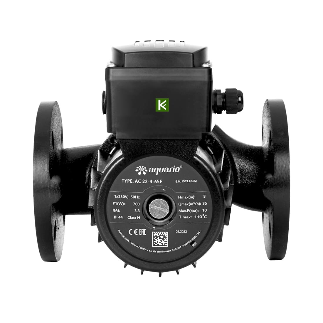 Циркуляционный насос Aquario AC 22-4-65F (Акварио) это одноступенчатый центробежный насос с соосно расположенными входными и выходными патрубками. Насос имеет патрубки с резьбовым присоединительным диаметром 65мм.