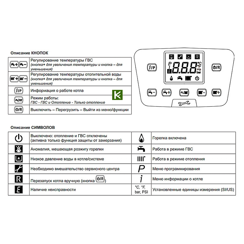 - Защитный термостат от перегрева воды в первичном теплообменнике.