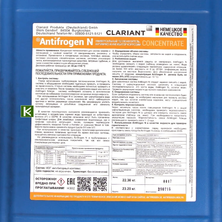 Теплоноситель Clariant Antifrogen N этиленгликоль