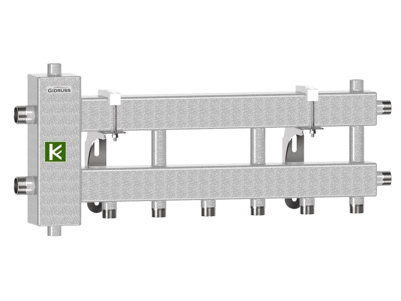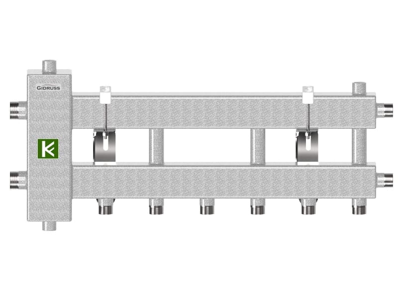- Коллекторы (гребенки) Гидрусс имеют встроенный сепаратор, который повышает эффективность удаления воздуха и очищения теплоносителя от механических примесей (шлама).