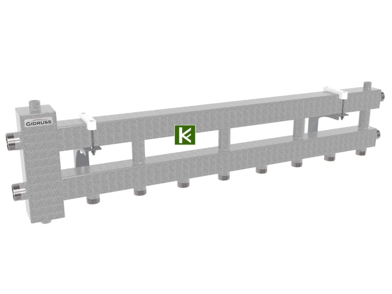 - Коллекторы (гребенки) Гидрусс имеют встроенный сепаратор, который повышает эффективность удаления воздуха и очищения теплоносителя от механических примесей (шлама).