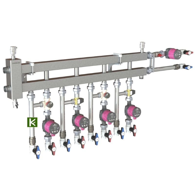 - Коллектор с гидрострелкой (гребенка с гидравлическим разделителем) Gidruss BM-60-5D предназначен для балансировки гидродинамических параметров системы отопления, исключая взаимное влияние насосов друг на друга.