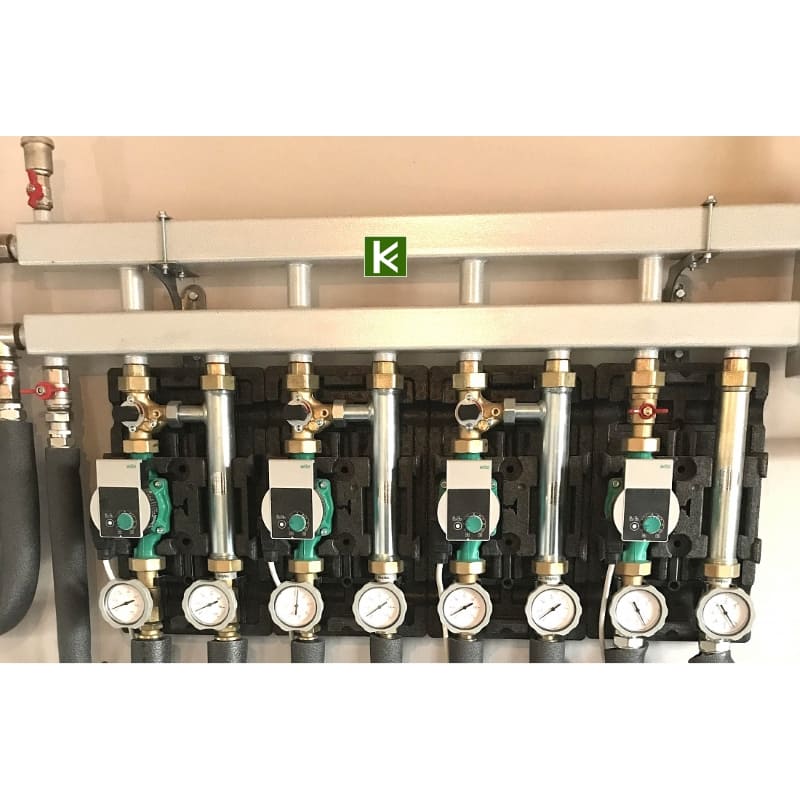- Коллекторы с гидравлической стрелкой распределяют теплоноситель по контурам и защищают теплообменник котла от гидроударов.
