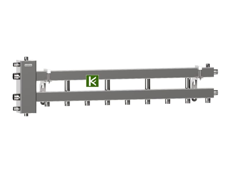 - Распределительные коллекторы (гребенки) Гидрусс для индивидуальных систем отопления имеют встроенный сепаратор, который повышает эффективность удаления воздуха и очищения теплоносителя от механических примесей (шлама).