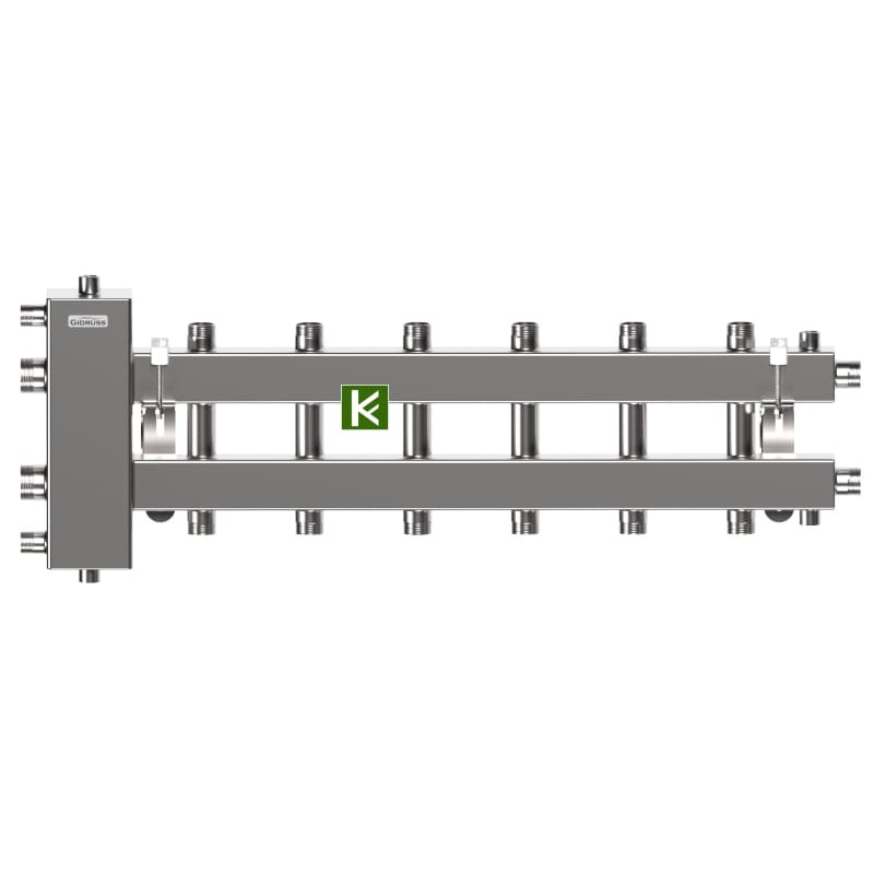 - Распределительные коллекторы (гребенки) Гидрусс для индивидуальных систем отопления имеют встроенный сепаратор, который повышает эффективность удаления воздуха и очищения теплоносителя от механических примесей (шлама).