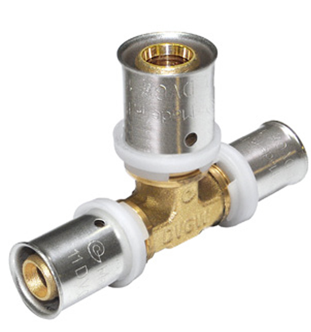 Тройник Ø20 х 26 х 20 под пресс металлопластиковой трубы для отопления и водоснабжения (фитинги Comisa)