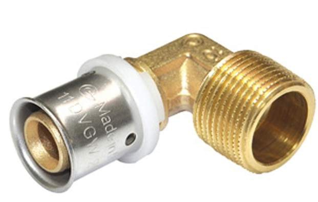 - Угол Ø16 х 1/2" НР под пресс металлопластиковой трубы для отопления и водоснабжения (фитинги Comisa)