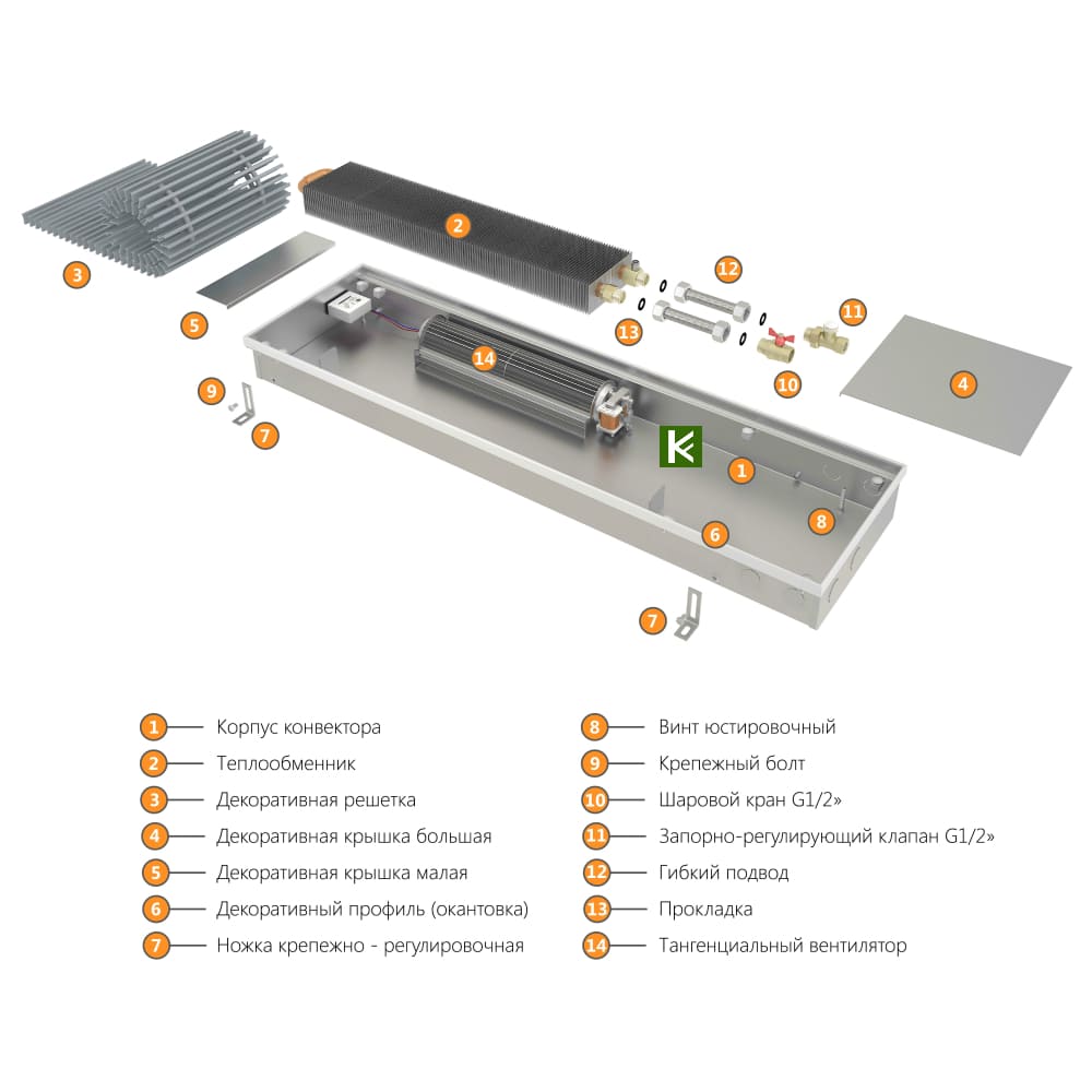 Конвектор Eva KB 303/65/2000 с принудительной конвекцией (внутрипольный конвектор)