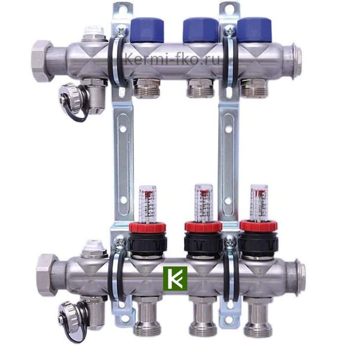 Коллектор для теплого пола 3 контура с расходомерами Hansa
