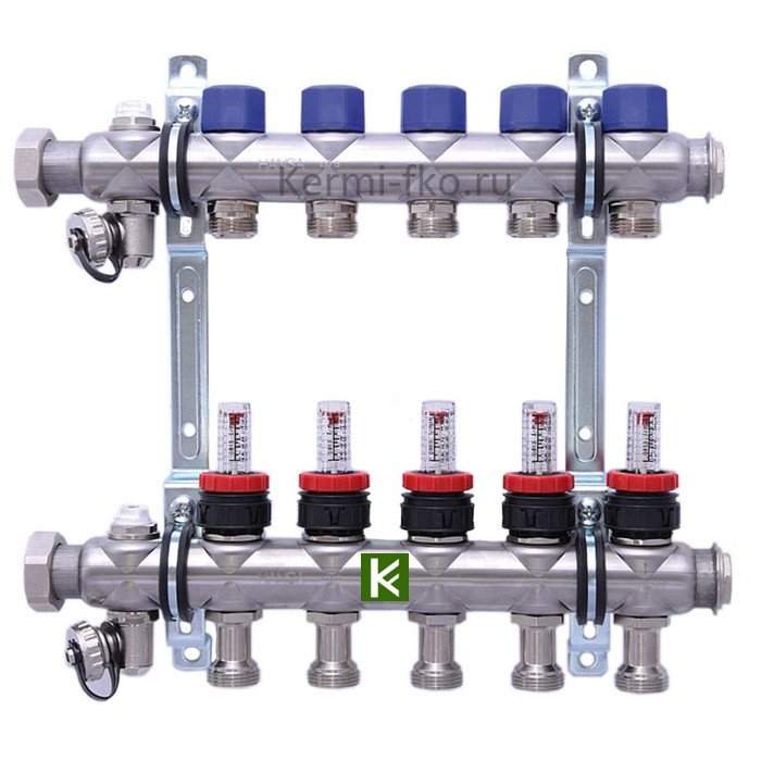 Коллектор для теплого пола 5 контуров с расходомерами Hansa