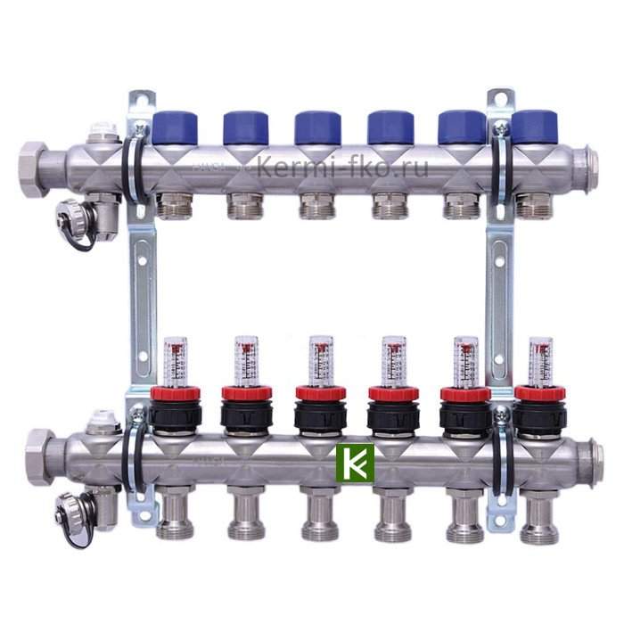 Коллектор для теплого пола 6 контуров с расходомерами Hansa