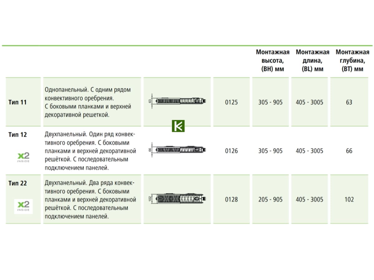 Радиатор Kermi Line-V (PLV), тип 22, высота 405 мм, длина 405 мм, глубина 102 мм, нижнее подключение