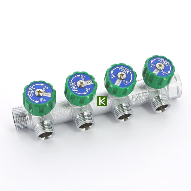 - Коллектор НВ 3/4" с вентилями FAR, 1/2"НР под EK (евроконус) 4 выхода
