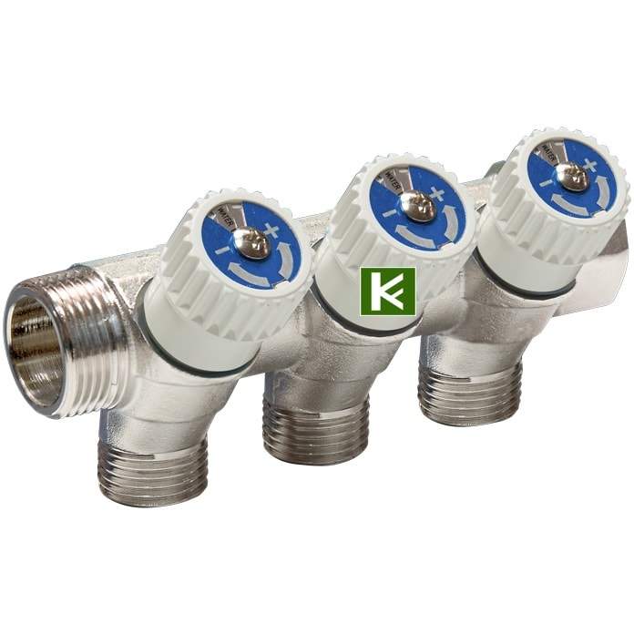 Коллектор НВ 3/4" на 3 выхода с вентилями Comisa