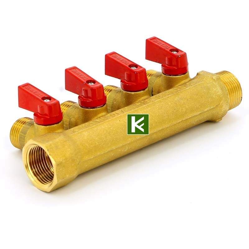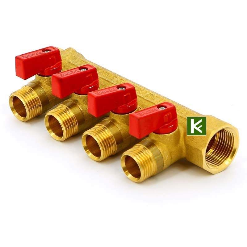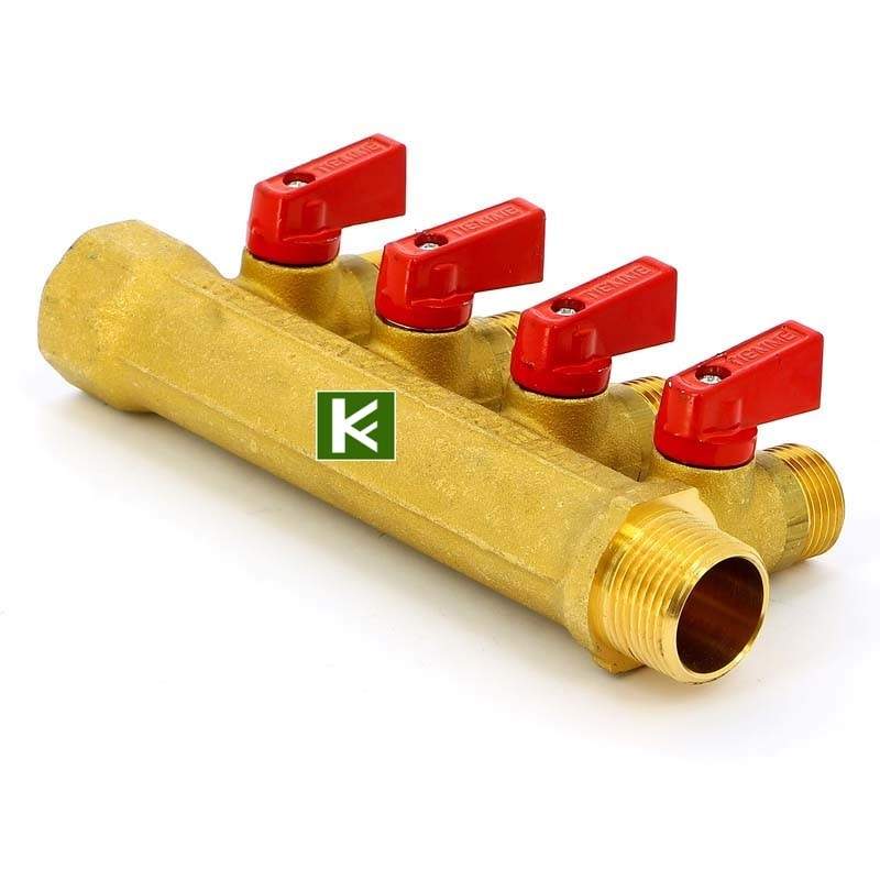 Коллектор НВ 3/4" на 4 выхода усиленный с кранами Tiemme для отопления и водоснабжения