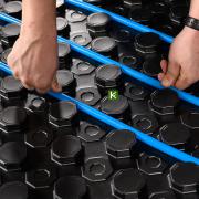 Формованные маты из пенополистирола с жесткой PS-пленкой KNAUF Therm Тёплый пол ЭКСПЕРТ имеют выступающие элементы восьмиугольной формы с дополнительными ребрами жесткости (т.н. «бобышки»), которые плотно фиксируют отопительные трубы.