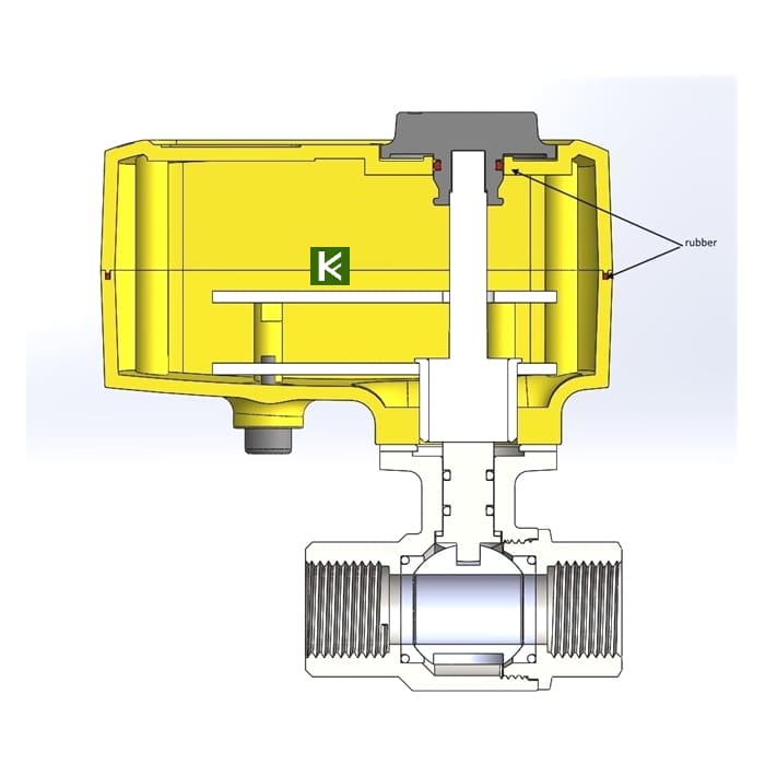 Уплотнение шара – 2 кольца из первичного фторопласта желтого цвета, 2 амортизационных кольца из EPDM - обеспечивают повышенный ресурс прочности.