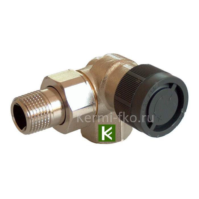 Кран 1/2" угловой осевой право для термостатов (черн.) Oventrop 1180493