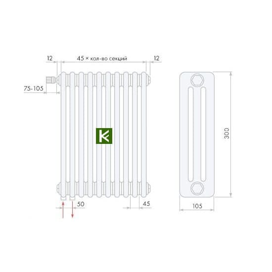 Стальной трубчатый радиатор Arbonia 3030/28 N69 твв с нижней подводкой (цвет белый Ral 9016)