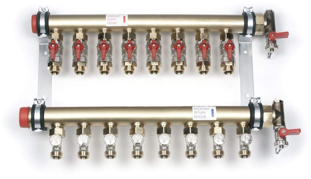 Коллекторные группы Rehau предназначены для распределения потоков по контурам, с балансировкой по расходу теплоносителя на каждом контуре.