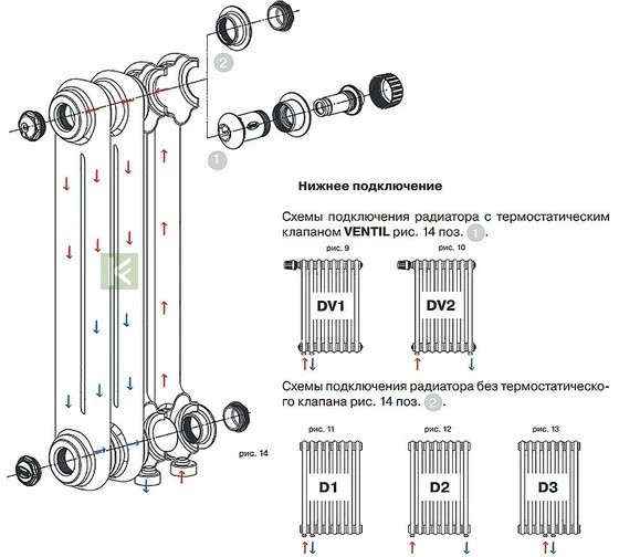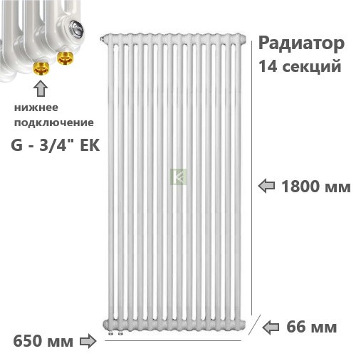 Радиатор 2-х трубчатый RIFAR TUBOG VENTIL 2180 - 14 секций с нижним подключением