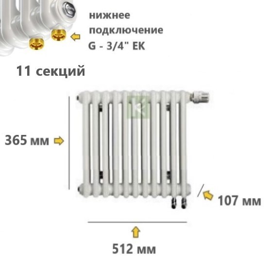 Радиатор 3-х трубчатый RIFAR TUBOG VENTIL 3037 - 11 секций с нижним подключением