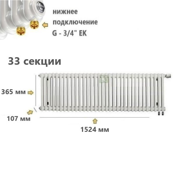 Радиатор 3-х трубчатый RIFAR TUBOG VENTIL 3037 - 33 секции с нижним подключением