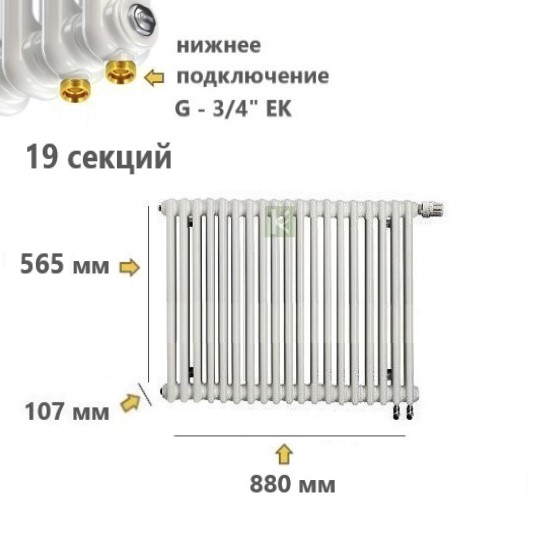 Радиатор 3-х трубчатый RIFAR TUBOG VENTIL 3057 - 19 секций с нижним подключением
