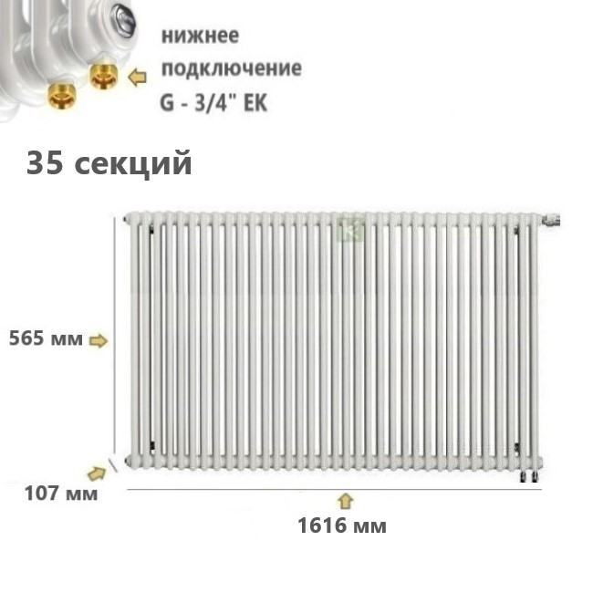 Радиатор 3-х трубчатый RIFAR TUBOG VENTIL 3057 - 35 секций с нижним подключением