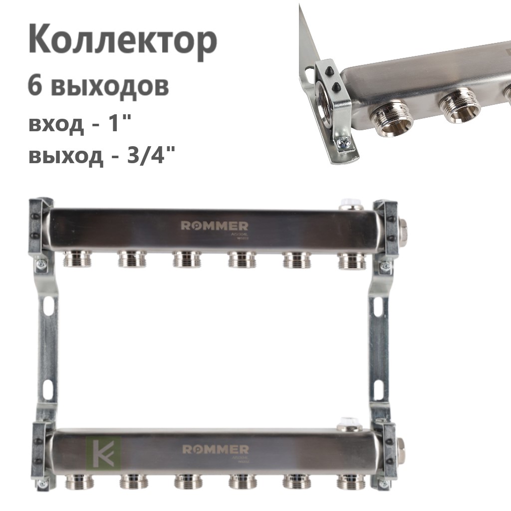 RMS-4401-000006 Rommer Коллектор из нержавеющей стали для радиаторной разводки 6 вых.