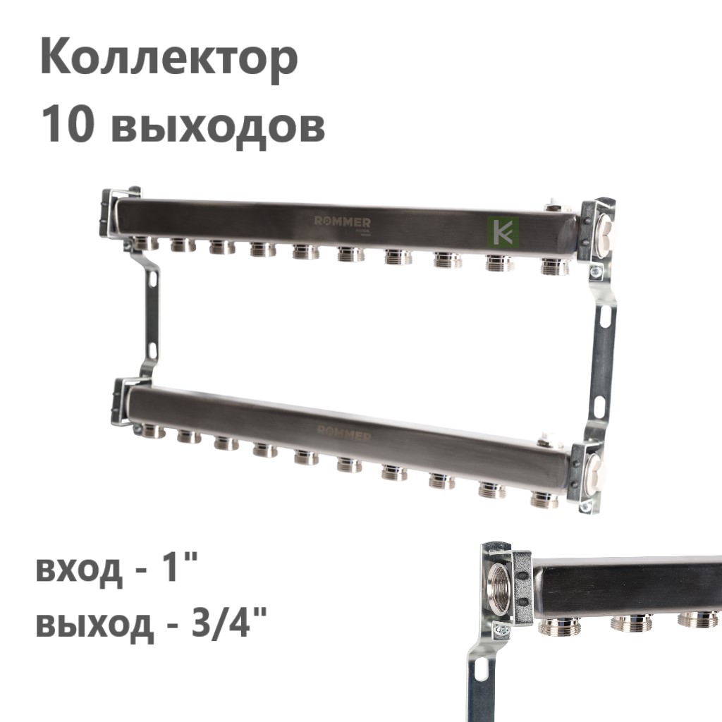 RMS-4401-000010 Rommer Коллектор из нержавеющей стали для радиаторной разводки 10 вых.