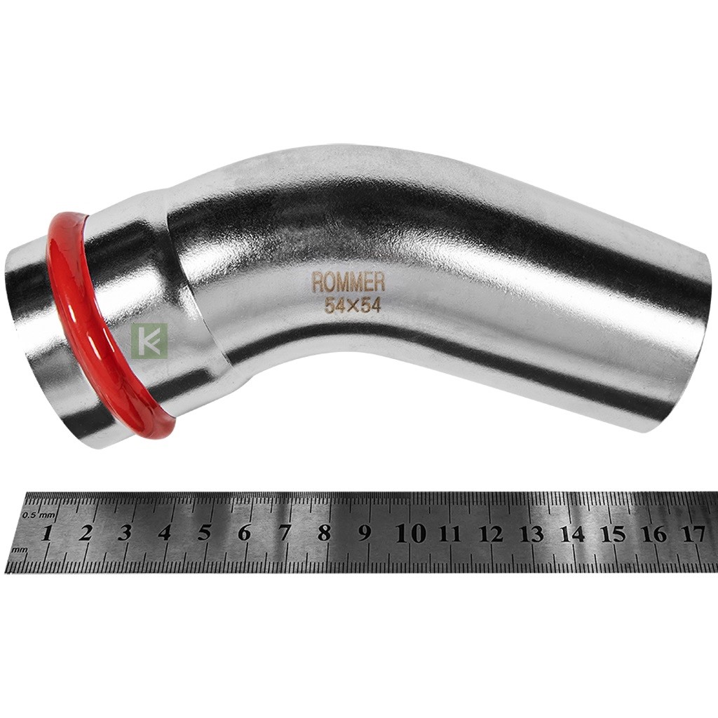 RSS-0004-000054 ROMMER Угольник однораструбный 45°, 54, из нержавеющей стали прессовой