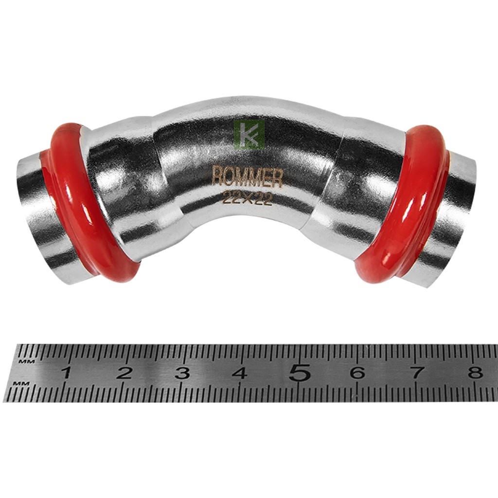 RSS-0005-000022 ROMMER Угольник 45°, 22, из нержавеющей стали прессовой