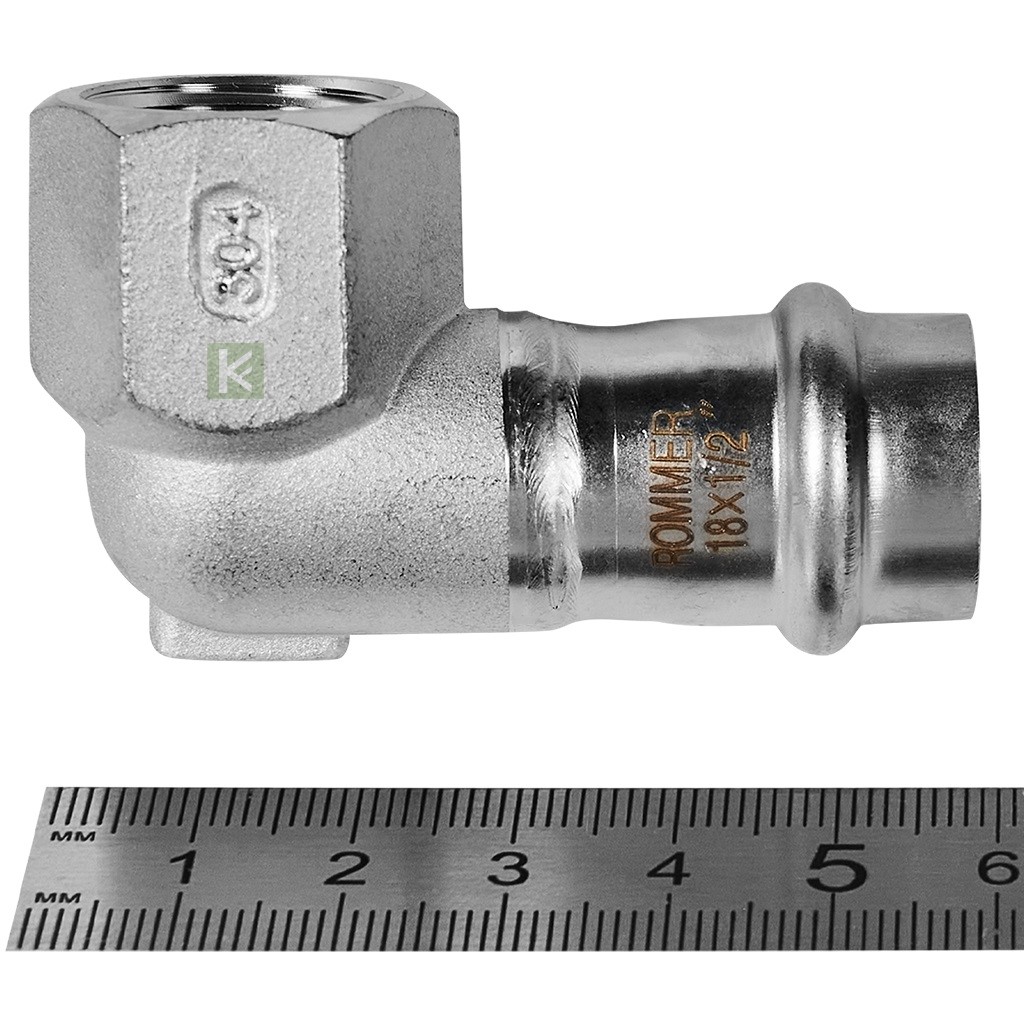 RSS-0009-001812 ROMMER Угольник-переходник 18х1/2 ВР из нержавеющей стали прессовой