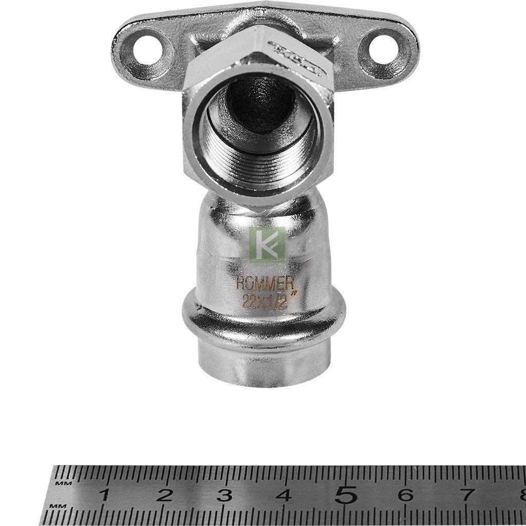 RSS-0011-002212 ROMMER Угольник настенный с креплением 22х1/2 ВР, из нержавеющей стали прессовой